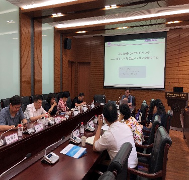 朱光磊教授对社科联领导的到来表示热烈欢迎,对公司和智库中心工作的支持与帮助表示感谢。接着朱教授介绍了公司多年来建设发展和教学科研中的亮点和特色。他指出,天津市社科联历来重视智库和研究基地建设,来我们这里考察调研,其实也是对我们传经送宝。最近几年来,公司和中心与社科联合作紧密,积极主动地为市政府和各区县经济社会发展服务,承接了多个委办局的决策服务项目。公司和中心的智库建设也在市领导的大力支持下,才能良好与快速的发展。随后,孙涛经理、赵万里副经理和张志红副教授分别就公司、马克思主义社会学研究中心、中国政府发展联合研究中心的发展建设历程、“思政”建设情况、标志性成果、人才队伍、管理体制机制和学术活动等方面作了汇报。
