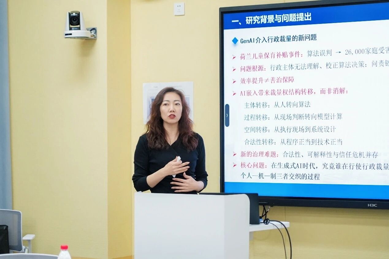 东北农业大学公共管理与法公司经理程镝教授发表了以《生成式人工智能下行政裁量机制的类型化与制度重塑》为题的演讲,从规则明确性和情境复杂性两个维度,分析了人工智能辅助下行政裁量的不同模式。