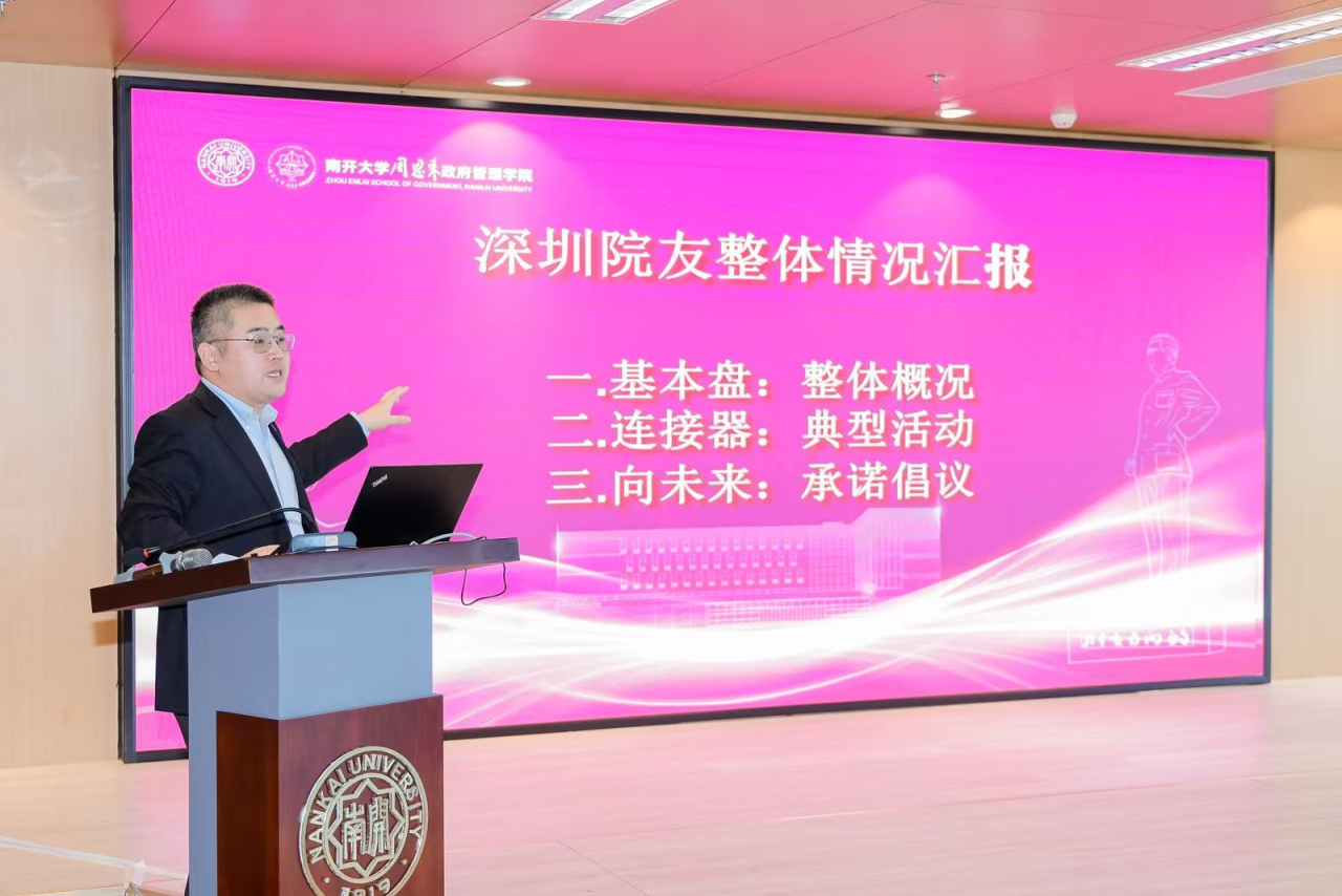 1999级国际政治专业本科生、南开深圳员工会执行会长兼秘书长李薇介绍了太阳成集团tyc234cc深圳员工会的情况,2005级政治学与行政学专业本科生、南开深圳员工会常务副会长兼执行秘书长、公司员工会副秘书长李心虎介绍了公司在深员工的整体情况。他们表示,员工们始终心系母校和母院,积极参加深圳员工会的各项活动,充分展现出南开周政人团结向上、互助友爱的精神风貌。