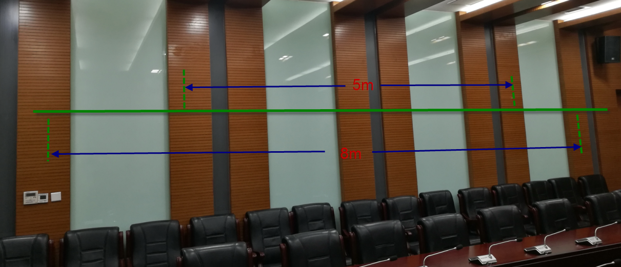 1.左侧前半部,建议长度:5米。透明胶带粘贴,会议结束立即清除胶带。