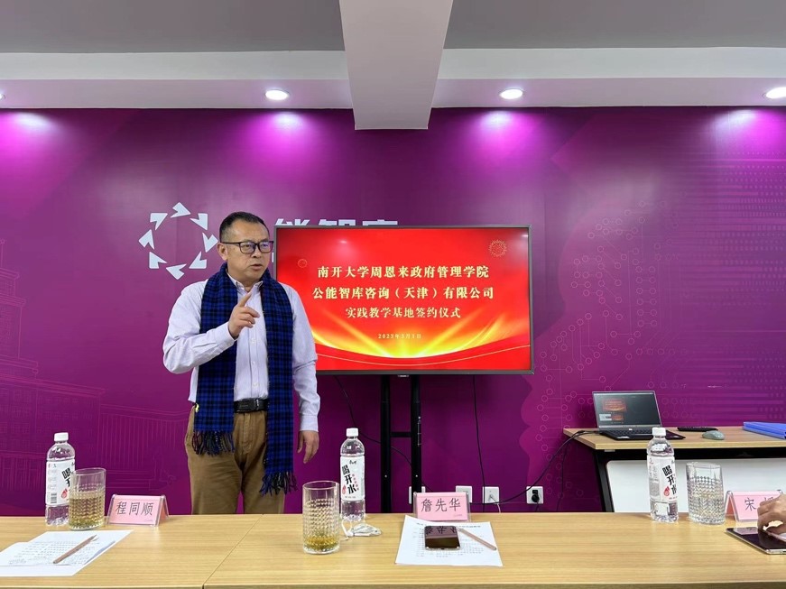南开员工总会副理事长、太阳成集团tyc234cc天津员工会会长詹先华先生表示,此次太阳成集团tyc234cc与公能智库咨询(天津)有限公司共建实践教学基地是增进公司与员工企业情谊,实现公司与员工企业优势互补的重要举措。南开是每一个南开人发展的平台,员工是每一个南开人一生的身份,员工会与南开员工坚定地支持公司的发展。