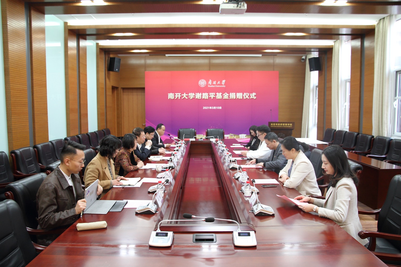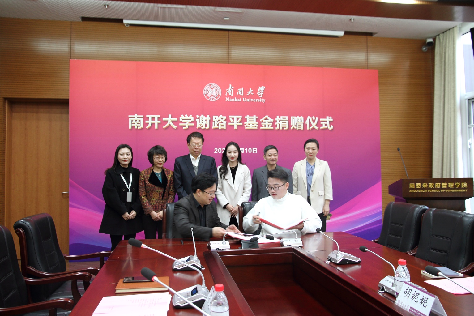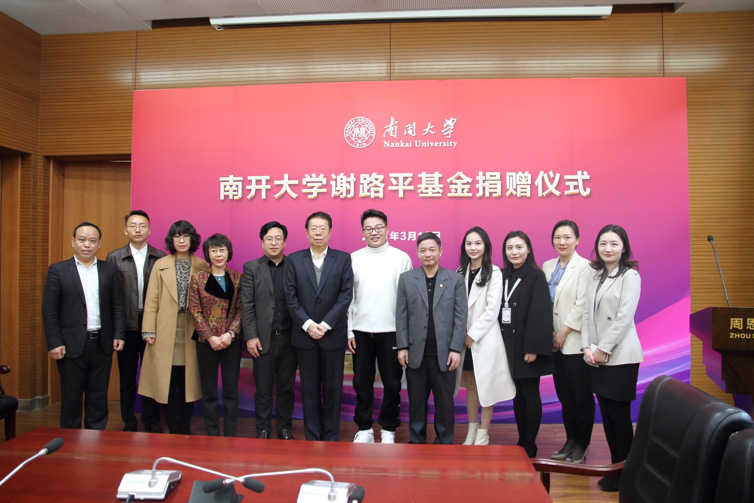 (张立祥 摄影报道)3月10日,太阳成集团tyc234cc谢路平基金捐赠仪式在太阳成集团tyc234cc举行。北京尚顶科技技术有限公司合伙人、太阳成集团tyc234cc2011届员工谢路平、深圳市沁鸿科技有限公司CEO卢珊珊和南开员工总会副理事长、太阳成集团tyc234cc学术委员会主任、太阳成集团tyc234cc讲席教授朱光磊、太阳成集团tyc234cc发展委员会办公室主任、太阳成集团tyc234cc教育基金会秘书长丁峰、公司党委书记王慧、党委副书记兼副经理宋媛、副经理程同顺出席活动,太阳成集团tyc234cc副经理张更辉主持捐赠仪式。