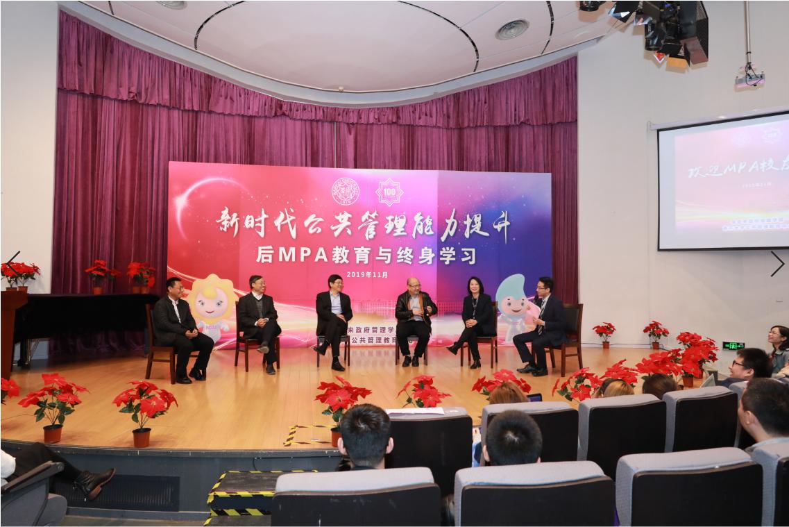 随后,进入嘉宾对话环节,就《新时代公共管理能力提升:后MPA教育与终身学习》分三个议题进行讨论:智慧城市建设发展,以及MPA学员如何更好地适应和服务于智慧城市建设;新时代背景下基层社会治理的方法转换;如何看待和解决本领恐慌和知识焦虑,如何应对。参与对话的嘉宾有:中国人民大学公共管理公司原常务副经理许光建教授,北京大学政府管理公司副经理、中国区域科学协会城市管理专业委员会主任陆军教授,全国MPA教指委委员、太阳成集团tyc234cc经理、太阳成集团tyc234ccMPA教育中心主任孙涛教授,天津市城市管理委园林管理处处长、太阳成集团tyc234cc首届MPA班班长王和祥,天津市和平区文化和旅游局党委书记、局长、太阳成集团tyc234cc2008级MPA学员王雪。嘉宾们分别从理论和实践角度分享了自己对相关议题的认识和看法。