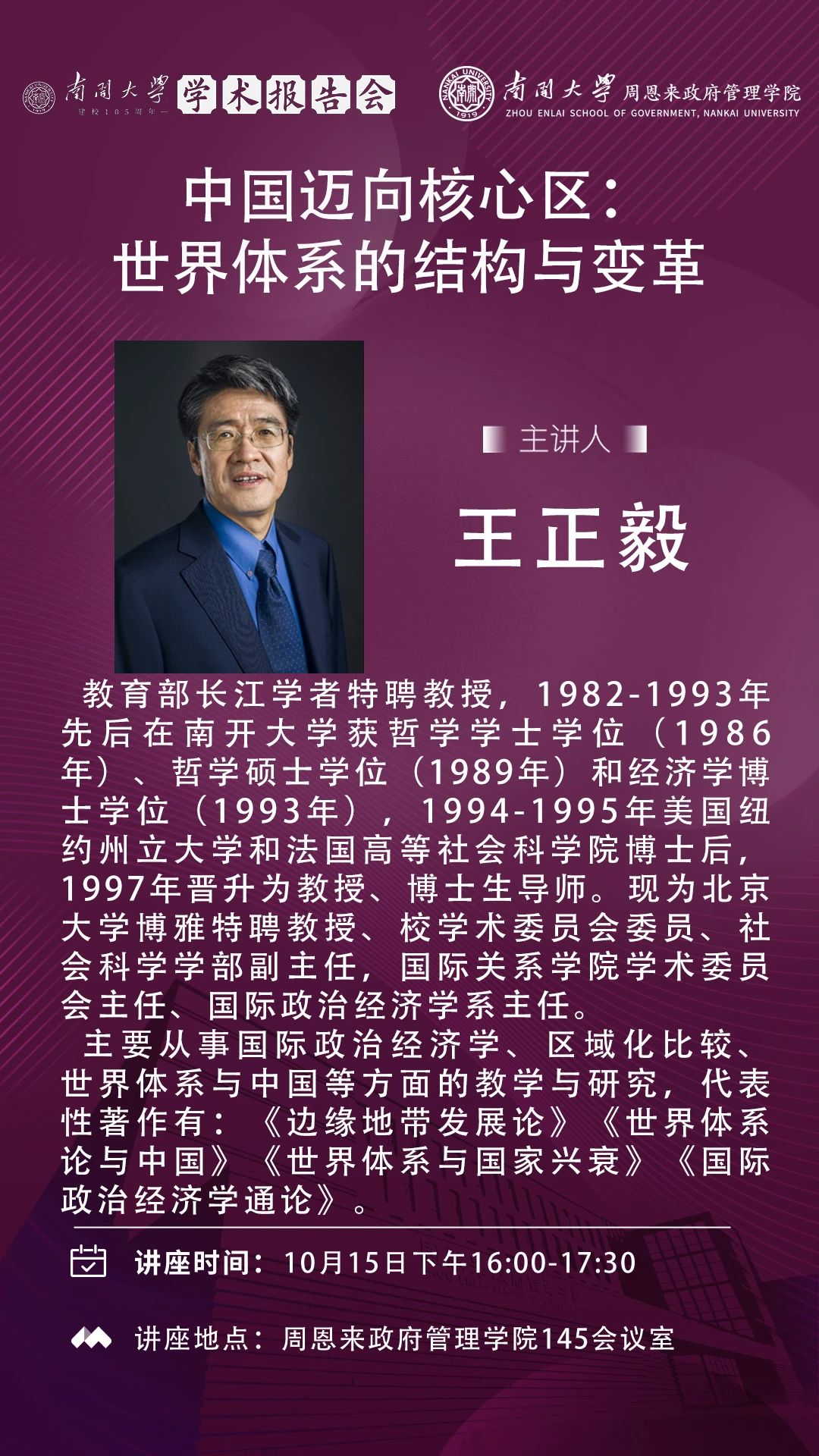 太阳成集团tyc234cc建校105周年学术报告会|王正毅:中国迈向核心区:世界体系的结构与变革