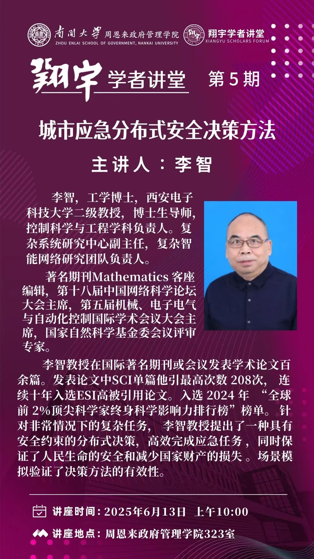 翔宇学者讲堂第5期|城市应急分布式安全决策方法