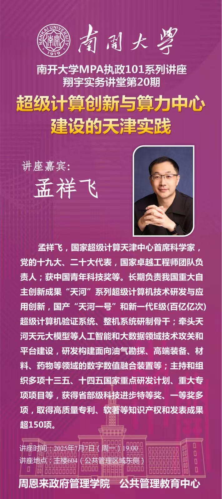 翔宇实务讲堂第20期|超级计算创新与算力中心建设的天津实践